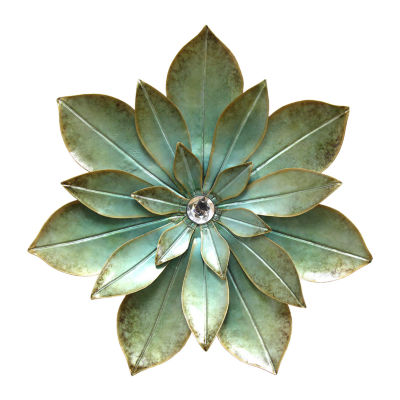 Stratton Home Decor Green Embellished Flower Decor Floral Metal
